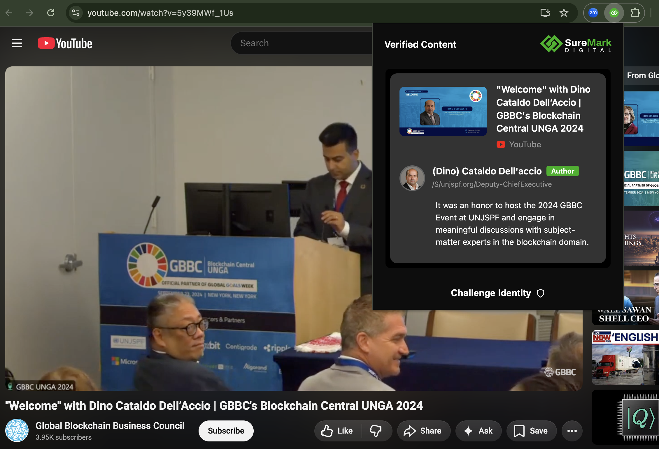 You notice that the SureMark Extension icon has turned green to indicate a securely signed piece of content